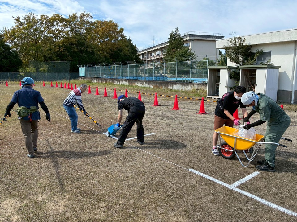 10月18日(土)には、一般サポーター、学生サポーターのみなさんに協力をしてもらい、校舎内外の清掃、駐車場のライン引き、教室棟の展示など開催に向けて準備をいたしました。