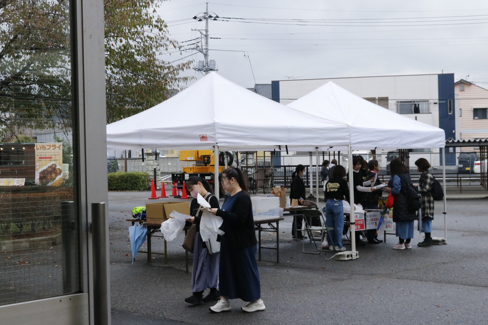 新体育館では撮影で差し入れされたロケロケセット(ぽれ珈琲「コーヒー」と福地製パン「揚げパン」がセット)、「BRISE kitchen」がクレープ、「2つ3つ」がシュークリームを販売いたしました。また、「大久保分校スタートアップミュージアム つくりえ-TSUCULIE」シルクスクリーン体験ワークショップを開催し、多くの方が体験されました。そのほか、ステージ上などで記念写真を撮影する姿も見受けられました。