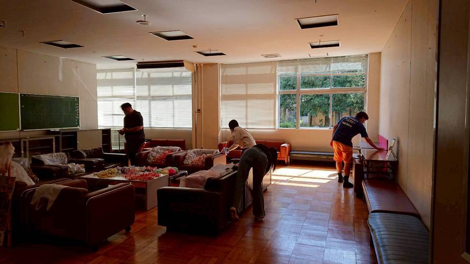 10月18日(土)には、一般サポーター、学生サポーターのみなさんに協力をしてもらい、校舎内外の清掃、駐車場のライン引き、教室棟の展示など開催に向けて準備をいたしました。